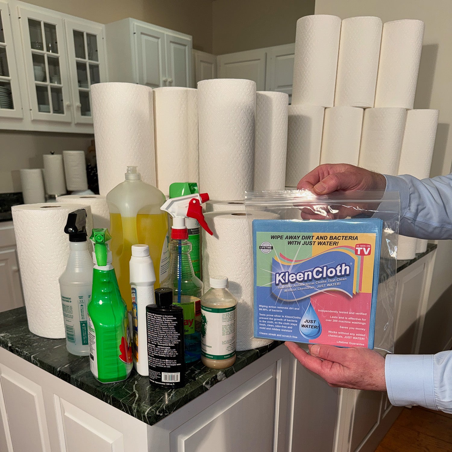 “I love how much money the KleenCloth saves me. I don’t need to buy any more cleaning chemicals, and no more wasting roll after roll of paper towels!”